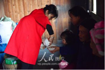 11月16日,新娘潘芝银在给亲人倒茶。