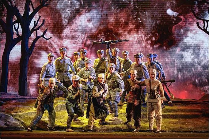 《花儿与号手》是一部以红军长征路过六盘山为背景创作的音乐剧,全剧展现了长征路上红军战士的理想信念和“长征是宣言书、是宣传队、是播种机”这一核心思想,弘扬了中国共产党百年征程中展现出的无私无畏的革命精神。
