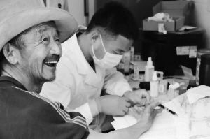 中央民族大学药学院师生为北京市怀柔区老沟门村村民开展义诊活动。