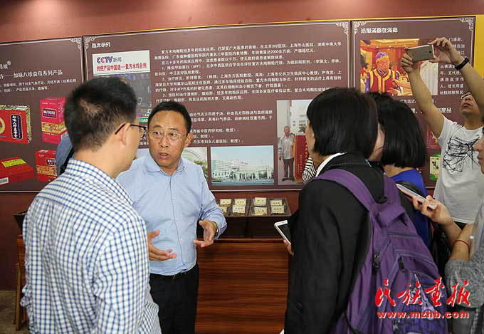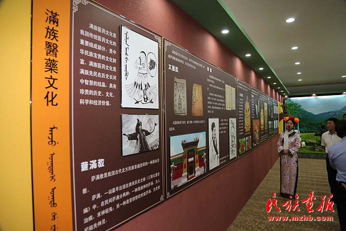 满族讲解员在满族医药博物馆讲解满族医药历史