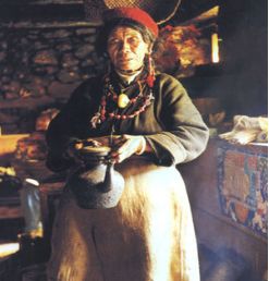 酥油茶的制作方法是藏族牧民们的创造。为了适应青藏高原高寒的气候和露天甚至风雪里放牧的生活,他们最需要的是一种御寒保暖的热饮,这样,酥油茶便应运而生了。酥油茶有各种制法,一般是先煮后熬,即先在茶壶或锅中加入冷水,放入适量砖茶或沱茶后加盖烧开,然后用小火慢熬至茶水呈深褐色、入口不苦为最佳。在这种熬成的浓茶里放进少许盐巴,就制成了咸茶。如在成茶碗里再加一片酥油,使之溶化在茶里。就成了最简易的酥油茶。但更为正统的做法是:把煮好的浓茶滤去茶叶,倒入专门打酥油茶用的酥油茶桶(这是藏区群众家里常见的也是必备的一种生活工具,由筒桶和搅拌器两部分组成。筒桶用木板围成,上下口径相同,外面箍以铜皮,上下两端用铜做花边,显得精美大方。搅拌器是在比简口较小的圆木板上安一根比桶稍高的木柄构成,圆木板上有4个直径约4厘米的小孔,搅拌时,液体和气体可以上下流动。现在,在城市和其他一些有条件的藏族群众家里,则更多地是使用电动搅拌器,既方便快捷,又干净卫生),再加入酥油和适量食盐,用搅拌器在酥油茶筒里使劲搅打,使酥油、浓茶和食盐充分融台为一体,然后倒入锅或者茶壶里,放在火炉上加热,或马上饮用,或装入保温瓶中以备全天之用。如果在上述的基础上再打进鸡蛋、加入准备好的核桃仁、花生、芝麻等物搅打溶化,这就是更高级的酥油茶了。除了用酥油,有的藏族群众还用骨髓、牛奶、清油等打酥油茶,这类茶至今还在喝,同样芳香甘美,强身健体,御寒保暖,而旦还可以加工加料,把酥油茶打成色香味俱佳的高级饮料。酥油茶醇正芳香,既可解渴,又可滋润肺腑,还能产生较大的热量,所以特别适合藏族人民高原御寒的需要。另外,由于牧区群众的日常饮食多以牛羊肉和糌粑为主,少食瓜果蔬菜,茶里含有的多种维生素和微量元素,部分维持了人体营养的均衡。同时,饮茶还有助于消化和维持人体的酸碱平衡。因而酥油茶一经产生,便流传至今,并成为藏族人民日常生活中的重要组成部分。