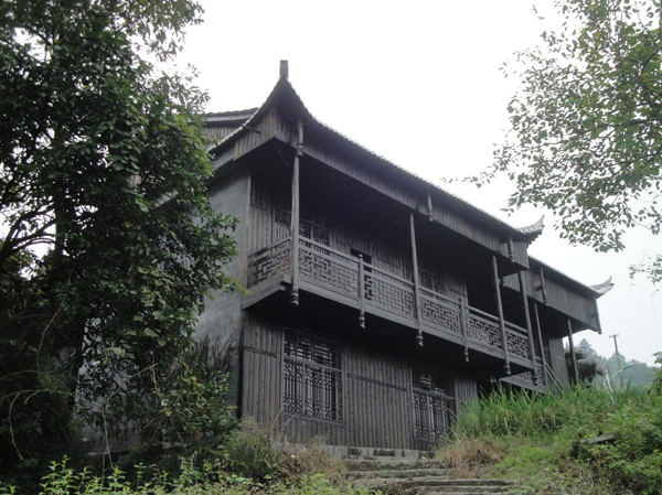 张明四合院东边有一近千平方米的驿站,鼎盛时期,客栈、鸦片馆、赌馆、妓院一应俱全,都是旺族张氏家族所有。1000多平米的石板古院坝保存至今,院坝内无水泥、无砂浆、无石缝,在全县、全州内都少有。这个古院落保存有80%的古木房子,因土改时其房屋分给贫困农民。主户门前建有朝门,门朝北,寓意向北方借水,以解火之用。据说此地属火龙地,现还留有火灾痕迹。有人说在后面山坡叫“火烧梁上”的山顶上建一座小水池,便可灭迹火灾。