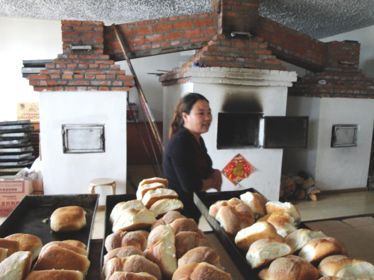 村民烤制的俄罗斯族传统食品列巴(摄影:王铁志)