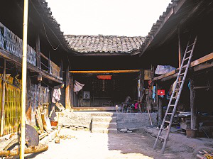 厨房大都在左间,地中间横砌土台锅灶,上面是两口大铁锅。靠后墙是炊具、餐具,前面是石碓,平时捣猪饲料,节日捣粑粑,用石碓捣的辣椒面也格外好吃。右间大都是家长的居室,只放木床。两侧厢房与主房分离,木板梯上下。一侧下层是猪圈、牛栏,上边存干草;另一侧下面堆放粮食、烧柴、摩托车,上层是未婚子女的卧室,有廊道、腰栏。院落小的,在主房对面设牛栏,砌土坯墙围成独立的合院。