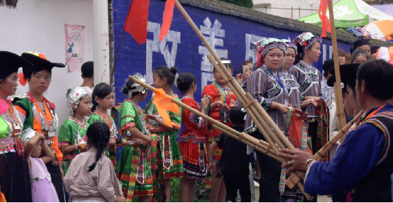 布依族青年们抬着族中神物铜鼓,吹着长长的号角,脸上满是对民族节日的期待之情,骄傲又兴奋;成群结队的孩童穿着本民族传统服饰,手拿锦带,热忱欢迎远道而来的客人;能歌善舞的布依阿姐笑脸相迎,唱着布依族的歌谣,一字排开堵在门前,客人们想要进去参加这次盛会,就得过三关,干了三碗拦路酒。
