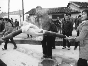 盘王节上,人们做起特色小吃“马拉糕”