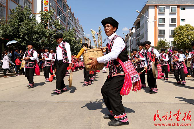 正月初三,乡镇拜年队伍走进县城(澜沧县民宗局供图)