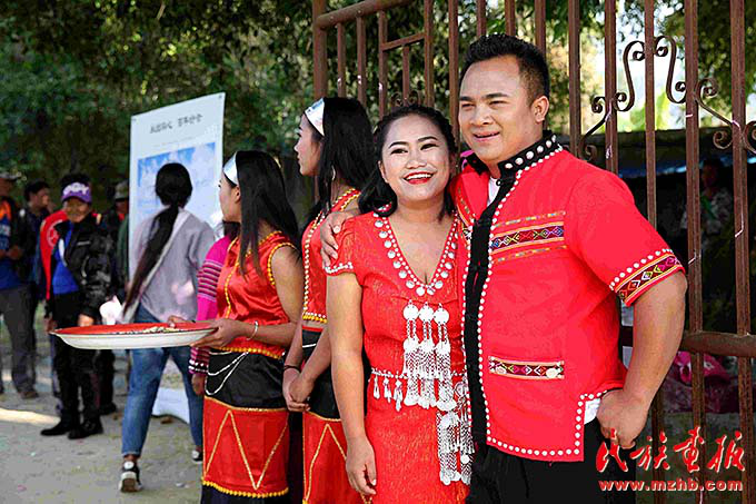 一对新人在双方父母见证下,以佤族传统婚礼方式喜结良缘