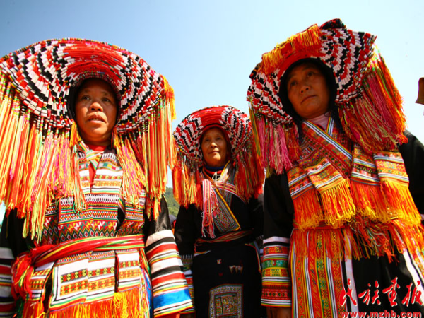广西贺州过山瑶妇女身上服饰色彩极其丰富