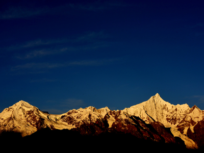 图为梅里雪山卡瓦格博峰的金黄“震撼”(引自德庆州政府网)