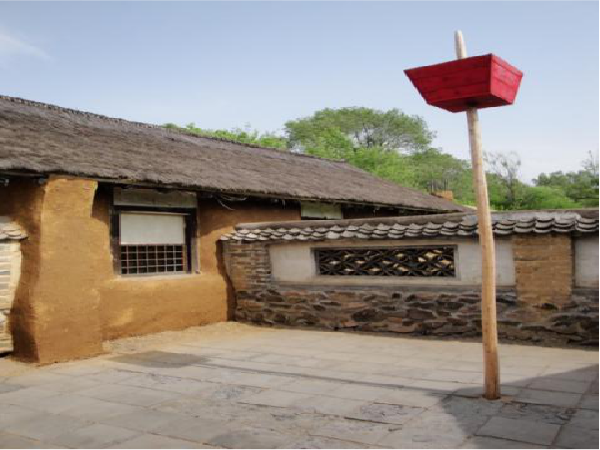 在村里,努尔哈赤的故居现在是一处旅游景点。四合院,院落外面有一盘石碾子,院落有草房和瓦房,院子里有猪圈、马圈、粮仓等,房子是“口袋房、万字炕,烟筒出在地面上”。院落的东南角,立着一根索伦杆。相传,努尔哈赤当年遭到明兵追杀,眼看被追上,从远处飞来一大群乌鸦,追兵赶到时只看到一片黑压压的乌鸦呱呱乱叫,没有发现人的踪影,努尔哈赤逃过了生死劫。为了纪念乌鸦的救命之恩,努尔哈赤在赫图阿拉时设堂子祭神,立杆祭天……祭祀乌鸦神现在还是满族人家重要的祭祀活动。