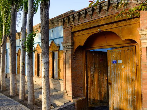 生活在新疆的维吾尔族人民,历史上以农业为主,维吾尔族村庄很多。信仰伊斯兰教后,其民居形式深受波斯——阿拉伯的影响。房屋为中亚地区的平顶,呈方形,墙壁是泥土夯筑的,有较深的带护栏的前廊。庭院中种植花卉、果树和葡萄,是弹唱、休息、餐饮之所。维吾尔族人民喜爱在庭院或外廊摆设茶具,接待客人。