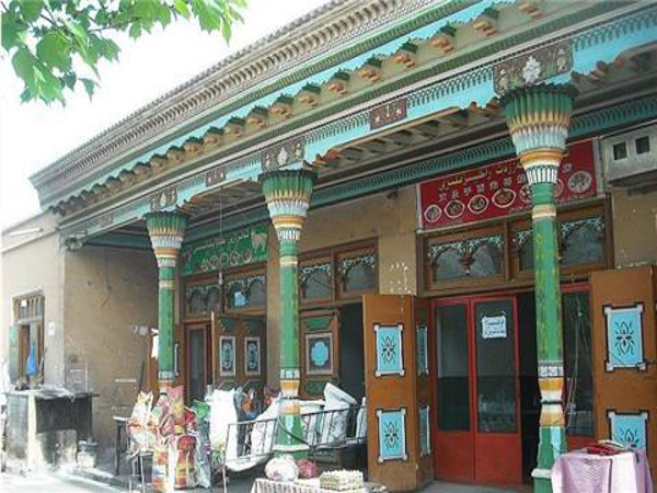 多用虚实对比,重点点缀的手法,喜欢采用磨砖拼花、石膏花、彩画、砖雕、木刻等装饰,装饰图案以及窗棂花饰,多为花草或几何图形;门窗口多为拱形;色彩则以白色和绿色为主调,表现出伊斯兰教的特有风格。
