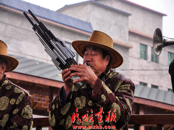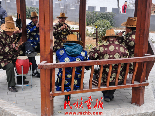 福山营满族村民在演奏宫廷古乐