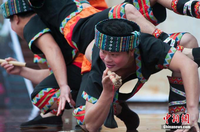 12月6日,在中国瑶族之乡广西金秀瑶族自治县的盘王节上,当地瑶族百姓在跳”刀舞”