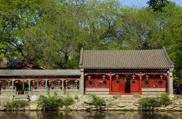四合院式民居,在汉代已渐成熟,唐代广泛使用。四合院大小规模不等,大型的四合院有二进、三进和东西跨院,或内有花园亭阁。不论大小都以中轴线为中心,建造大屋顶,两边基本对称。四合院大都为封闭式格局,布局严谨,幽雅美观,屋内冬暖夏凉。北京恭王府大观园为四合院建筑艺术之精华。