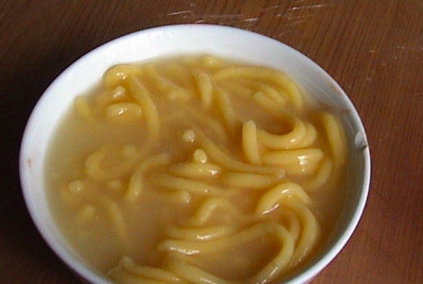 在夏季,满族同胞喜食“酸汤子”,其制法是:用玉米发酵面团制成面条或面片,直接甩入汤锅中制成。操作步骤是将玉米浸泡磨成水面,用布滤去渣滓,细面入缸发酵至微酸,然后从手指上戴的漏斗形汤套中挤出长条,下沸水锅中稍煮,再盛入碗内。也可将发酵后的面团加糖搅成糊状,用勺舀从锅沿自然流入锅中间,成牛舌状,也称牛舌饽饽。食用时略带酸味,味美可口。