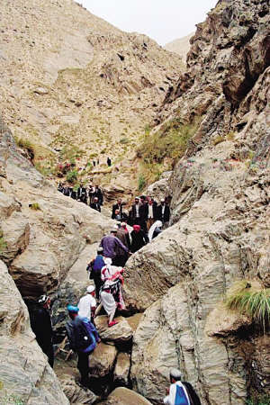 2004年5月,洛浦县阿其克山麻扎,信徒们踏上艰难的朝拜路