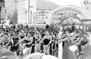 具有浓郁风情的重庆酉阳土家摆手舞,近年来开始走红全国。2002年5月3日,在县城桃花源广场,举行了“酉阳第二届土家摆手舞大赛”暨迎接国家文化部“酉阳,土家摆手舞之乡”命名验收。作为“中国记者酉阳行”大型采风活动成员之一,笔者有幸观看了土家族上万男女老少冒雨艳装重彩、翩跹起舞、欢腾喜庆的场面。