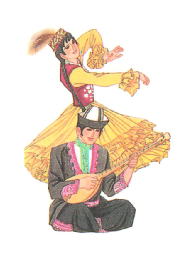 哈萨克族的传统乐器可分为弹奏乐器、吹奏乐器以及打奏乐器。其中“冬不拉”、“萨孜”和“布特根”属弹奏乐器;“斯伯孜俄”、“斯尔那依”等属吹奏乐器;“达布拉”、“哈拉”等属打奏乐器。无论是哪种类型的乐器无疑都将哈萨克族人民豪放洒脱,但又不失柔软细腻的情感表现得淋漓尽致。哈萨克族的舞蹈刚健有力,潇洒优美,如“喀达卓日哈(黑走马)”、“狗熊舞”、“鹰舞”、“挤奶舞”等都是反映哈萨克族人民日常生活的民族舞蹈。除歌曲、舞蹈以外,哈萨克族还有姑娘追、叼羊、赛马等妙趣横生的体育娱乐活动。