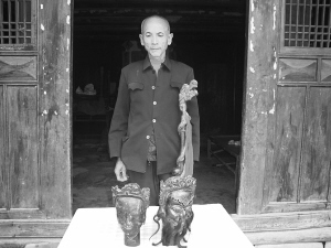 符长洪展示侗族传统道具。
