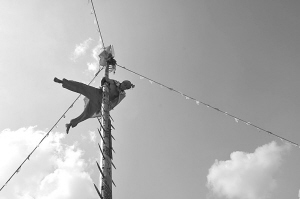 因此,长团村流传习俗:每当天灾来临,都要“上刀梯下火海”,祭拜天神。“上刀梯下火海”的绝技,也在符家代代相传。