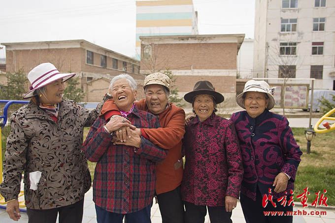 在肃南裕固族自治县老年公寓快乐生活的各族大妈们,因为生活条件的越来越好而喜笑颜开(央金 摄影)