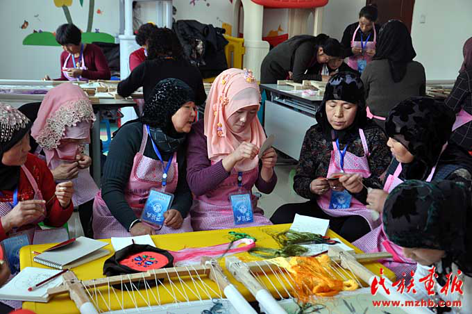 东乡县妇联开展的手工编织技能培训使更多东乡族妇女利用刺绣等一技之长增加了家庭收入(胡发伟 摄影)
