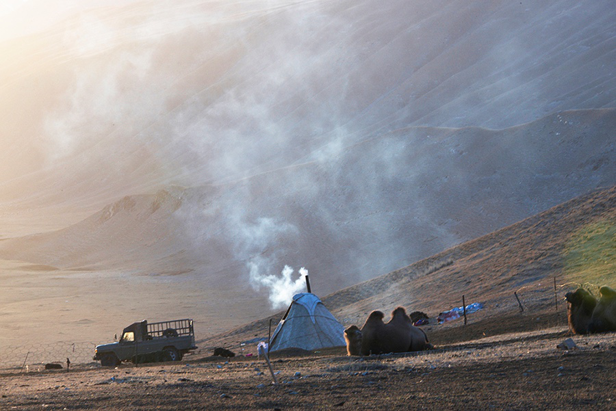 草原年复一年,儿子最终会在方方面面全面取代父亲。而在彭才家,这个戏码从开始经过高潮长达数年,到我在场的时候已近尾声,双方只是一下不适应。至此,只要长子达米仁加甫在场,妈妈的第一碗茶或第一碗饭,一定是递给他的。或早或晚喝茶、吃饭,彭才已在慢慢适应。这是蒙古族久远之前延续至今的草原法则,总在以最大、最强的优势组合保证最合理、最有利的选择与方式,与新疆其他草原民族的长老体系和以长老为核心建立的家族等级秩序极为不同。