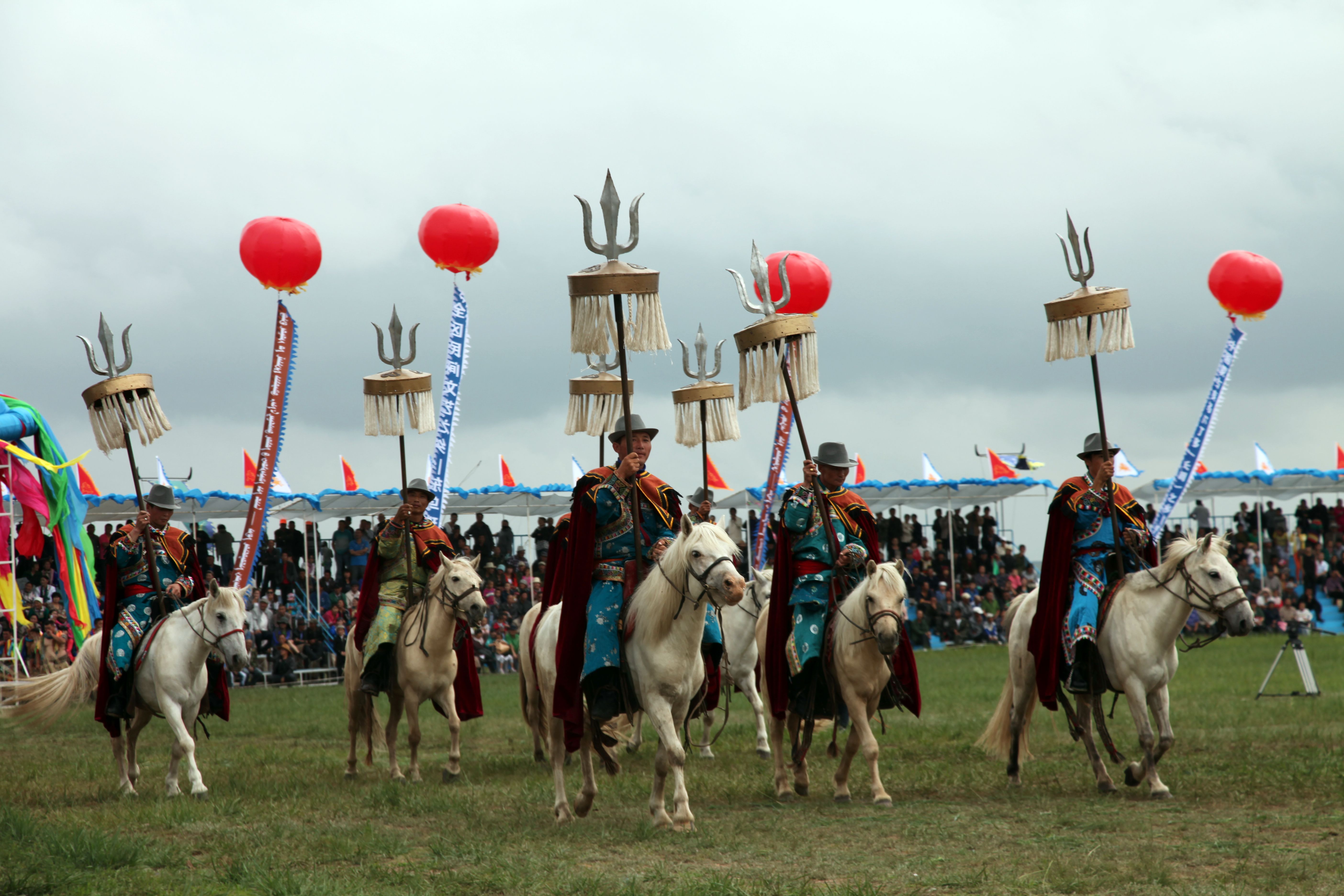 图片名称:蒙古族体育比赛马队进场