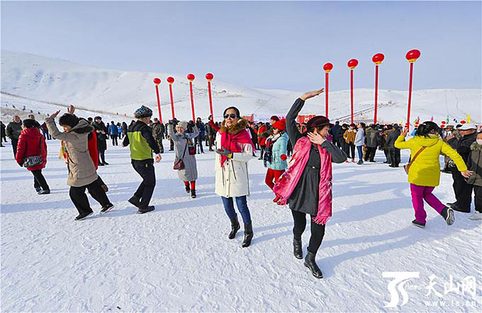 游客们在冰雪旅游文化节上载歌载舞