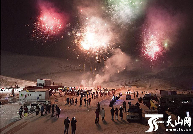 雪山烟花让游客们纷纷驻足拍照留念