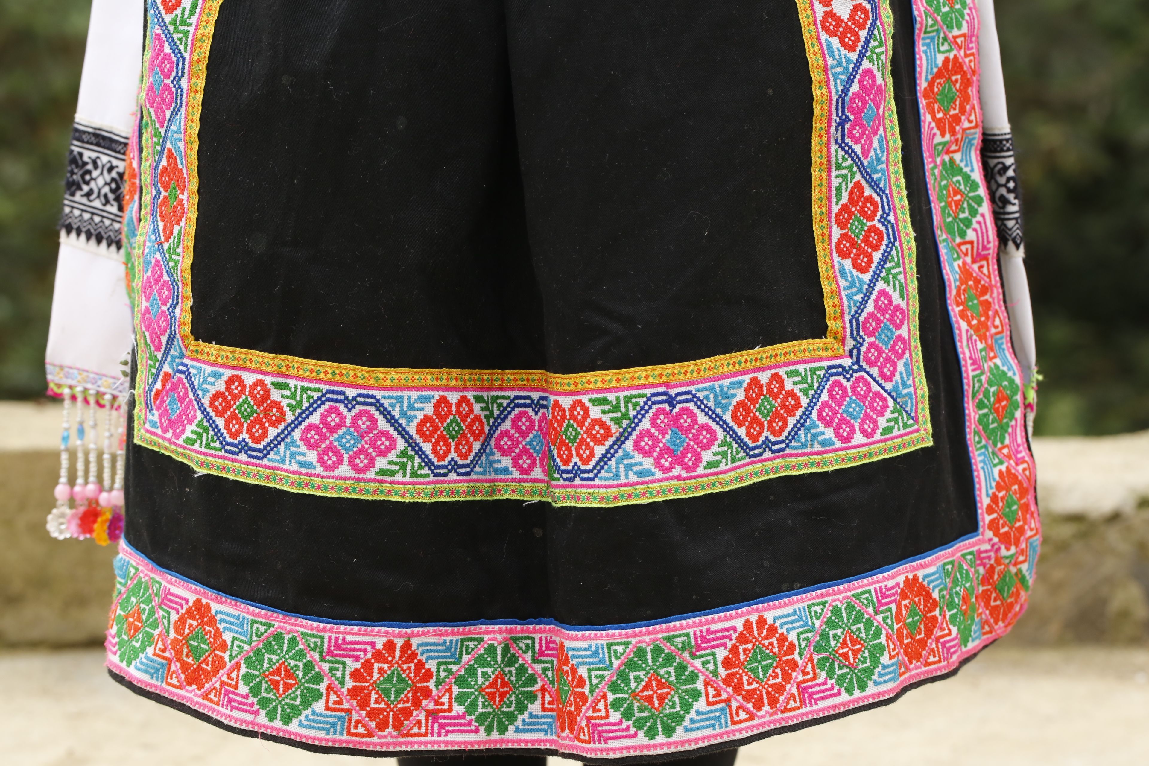 苗族女子服饰花带百褶裙-裙摆侧面装饰