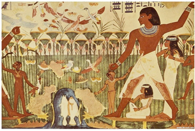 这是一门男人的手艺,父系相传。在坚硬的牛骨上,起刀、转承、刻下,再施以黑色染料(少许有彩色,但以黑色居多),骨簪通体扁平,纹饰繁复却极有空间和秩序感。人形骨簪有单人头和双人头两种。骨簪分顶部、中部、尾部三个部分。顶部为黎族传说中峒主(也被称为“总管三”的部落首领)的尖顶高帽,中部为其侧面像。根据黎族传说,该首领是民族英雄,象征着祖先的文治武功。有趣的是,这一人像的刻画,与古埃及壁画人物造型的“正面律”如出一辙,即人面部的扭曲:眼睛正面,脸却是侧面。这一特征,一定程度上体现了古埃及人的生死观,灵魂不灭,人能复活,而复活要凭借维持完好的躯体,因此在透视画法没有发明出来之前,人的五官是要尽可能的呈现,尤其是最重要的双眼。