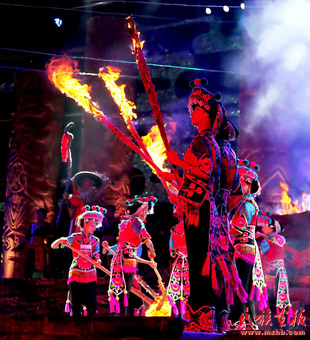 2017年火把节上楚雄民族服饰赛装节目展演。赛装节已经不局限于大山深处,而是走上了更广阔的舞台(楚雄州民宗委 供图)