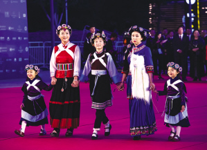 纳西族演员在开幕式走红毯。 胡科摄