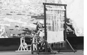 藏毯展会上,演员艺术地表现了藏毯传统编织技艺。贾海元摄