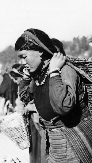 背着驮篮的女人。