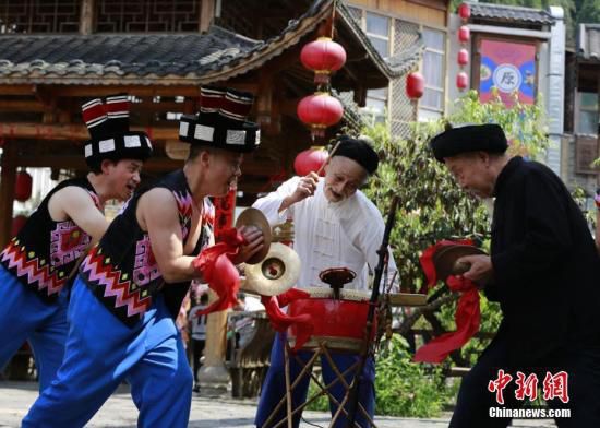 毛方明的父亲毛开善告诉中新社记者,土家族撒叶儿嗬以前只在白事期间进行表演,如今随着时代变化,已逐渐趋于常态化。