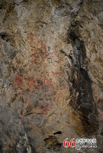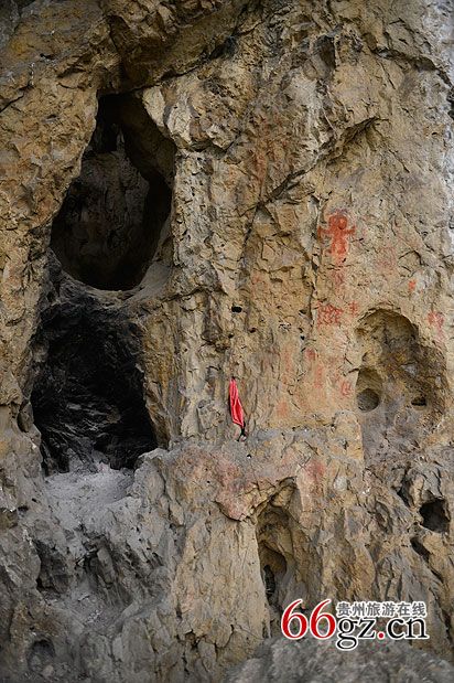 同时,在金山洞壁上的清代壁题也数量众多,既有题诗,又有纪事,还有祝文,分别题于清乾隆、道光、咸丰年间。明显可见“贵州贵阳府”和“贵阳府广顺州”等字样。还有1949年以后的毛主席语录,均以赭色书写。据说时至今日,仍有村民在岩下洞口焚香秉烛,寄拜岩神,祈祷康健。现在在岩石上还能看到祈福的红布和被烟火熏黑的岩洞。