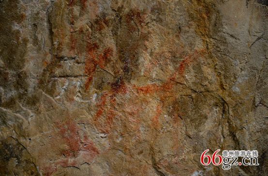 据资料载,金山洞古代崖画以赭色涂绘人、马、狗等等,隐约可见形态各异的大小图像二三十个。人物多作行走状,亦有双手高举者,似乎在祈祷。从其画风观察,与相距不远的省级文物保护单位--长顺龙家院崖画十分相似。