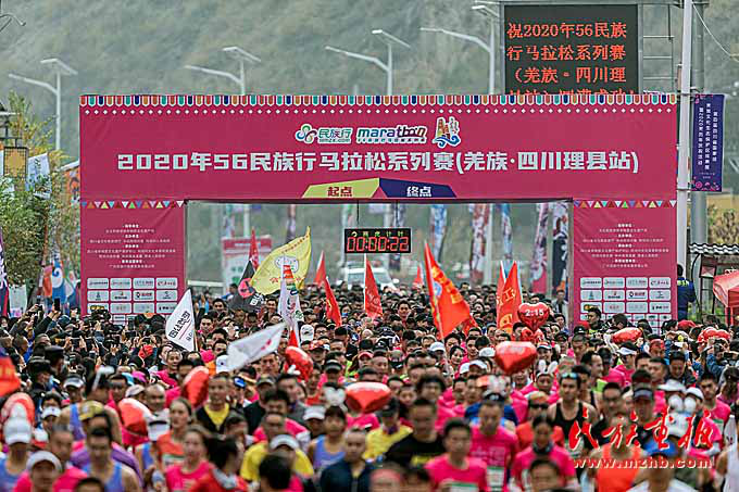 11月14日,2020年56民族行马拉松系列赛(羌族•四川理县站)在四川省理县幸福开跑。