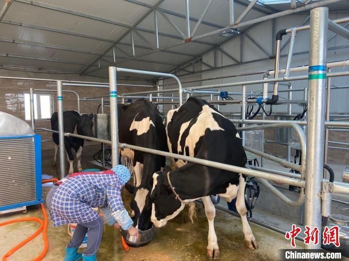 图为工作人员正在照顾奶牛。 受访者供图