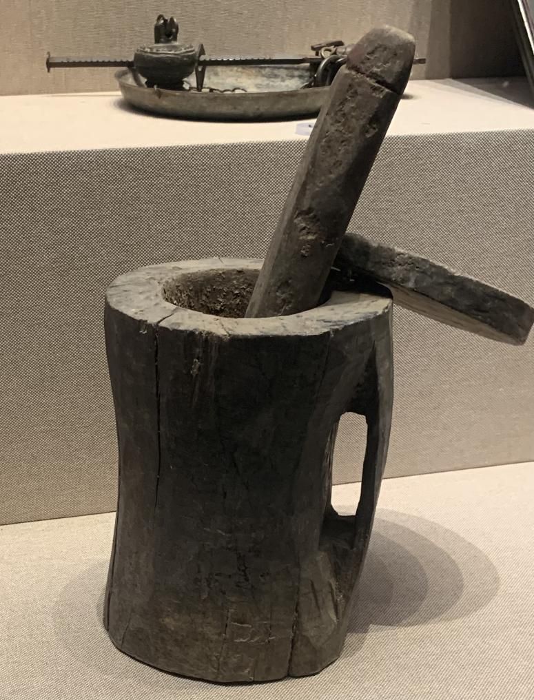 上为药秤,下为木镭钵(许觊佳摄于贵州省民族博物馆)