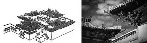 夏鲁寺采用汉藏建筑风格结合制式(左),施以绿色琉璃瓦的汉式歇山顶及檐下斗拱(右)。闵天怡供图