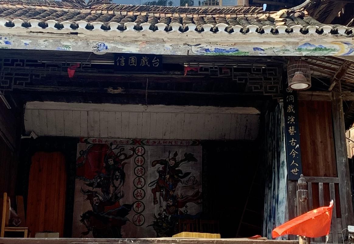 戏楼又称戏台,是侗族人演唱侗戏的场所,大多位于鼓楼附近。戏楼造型与侗族民房类似,用杉木建成,戏台离地进两米,前敞后封,后台间壁留有两个边门,供演员出入之用。