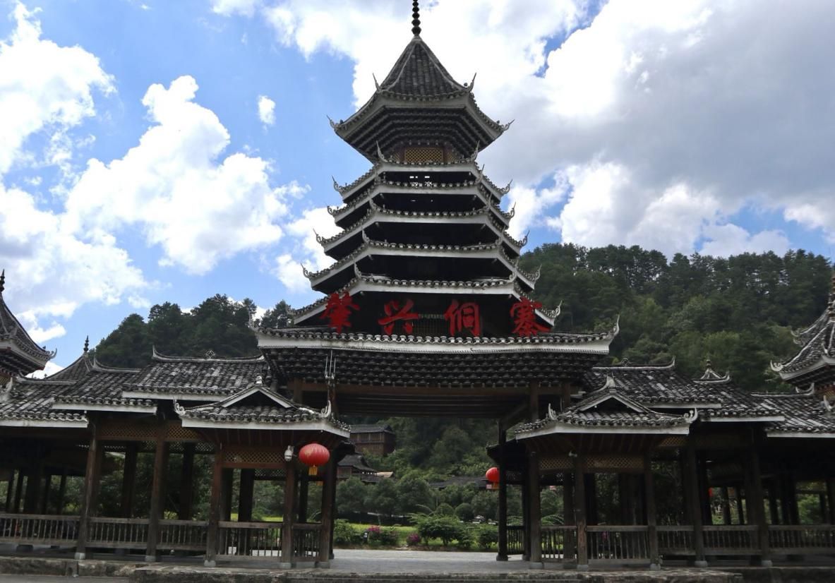 寨门是建在侗寨村寨入口处的门阙式建筑,是侗寨边界区分的标识。古时具有关防作用,守卫村寨的安全。现代除装饰侗寨外,寨门还作为节庆期间迎宾送客的场所。