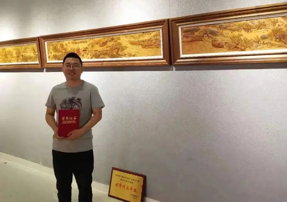 包头市东河区皮雕画非遗项目传承人张卫祥,2012年毕业于中央美术学院,受老师影响,毕业后一直致力于把皮雕与古代山水画结合,使皮雕画展现出古朴典雅的风格,许多皮雕作品屡屡获奖。