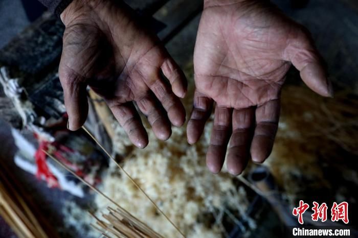 竹编手艺是个技术活,更是个伤手的活。黄大青伤痕累累的双手,便是竹条经年累月留下的“印记”。