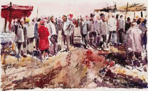 《巴扎上的人们》 贾忠 水彩 79cm×46cm